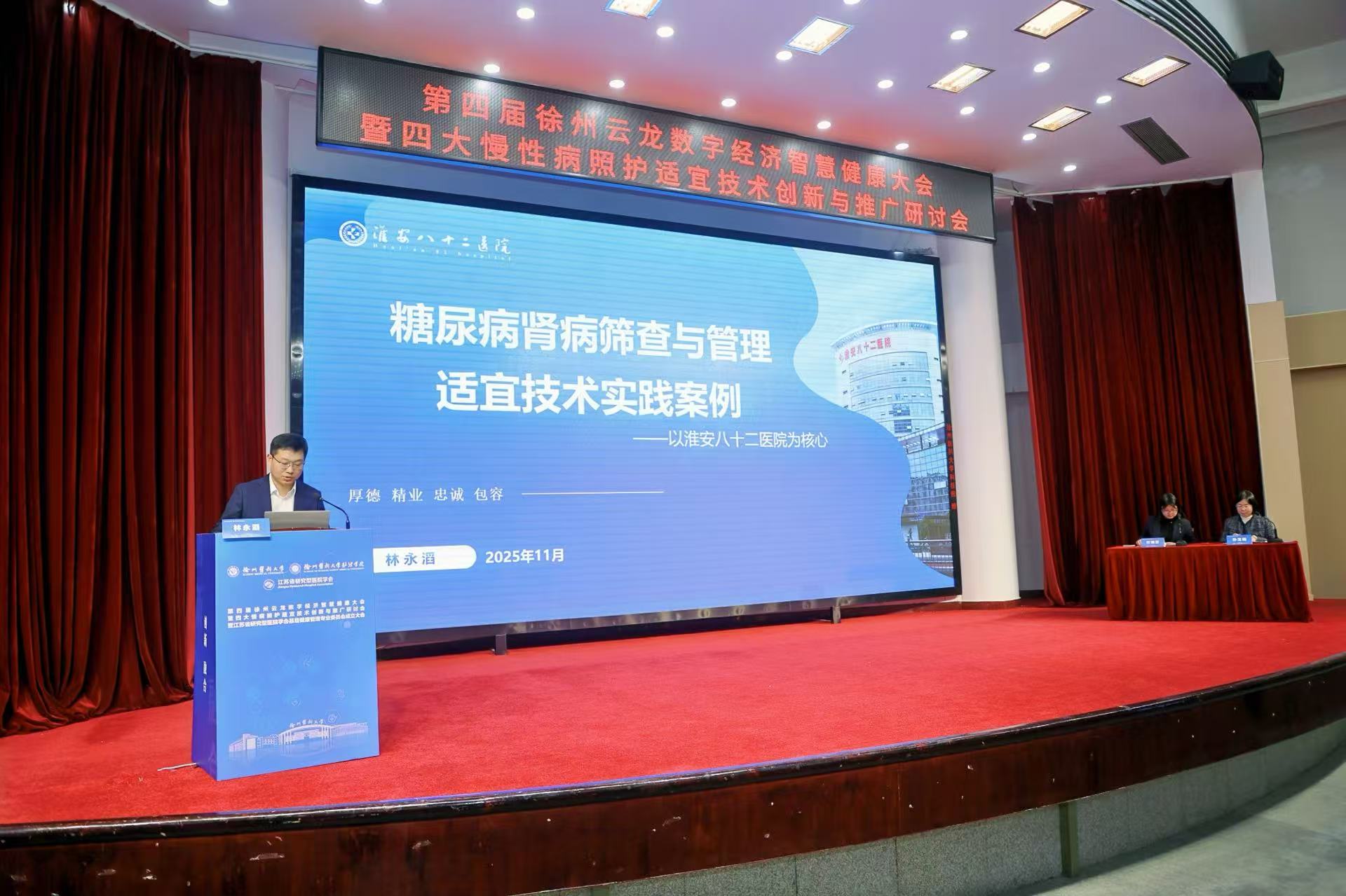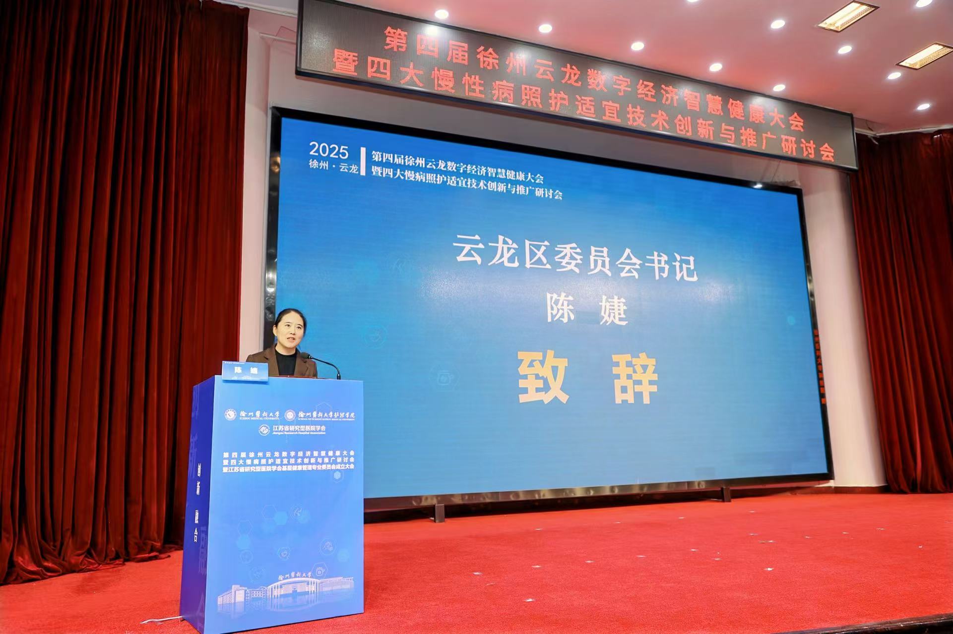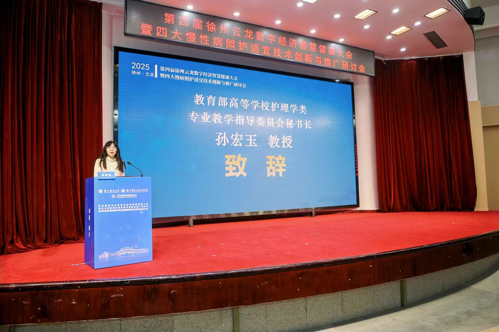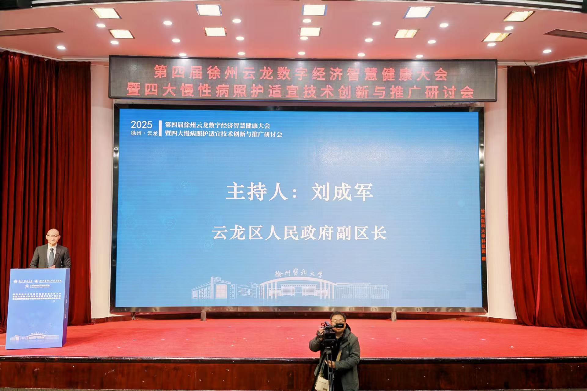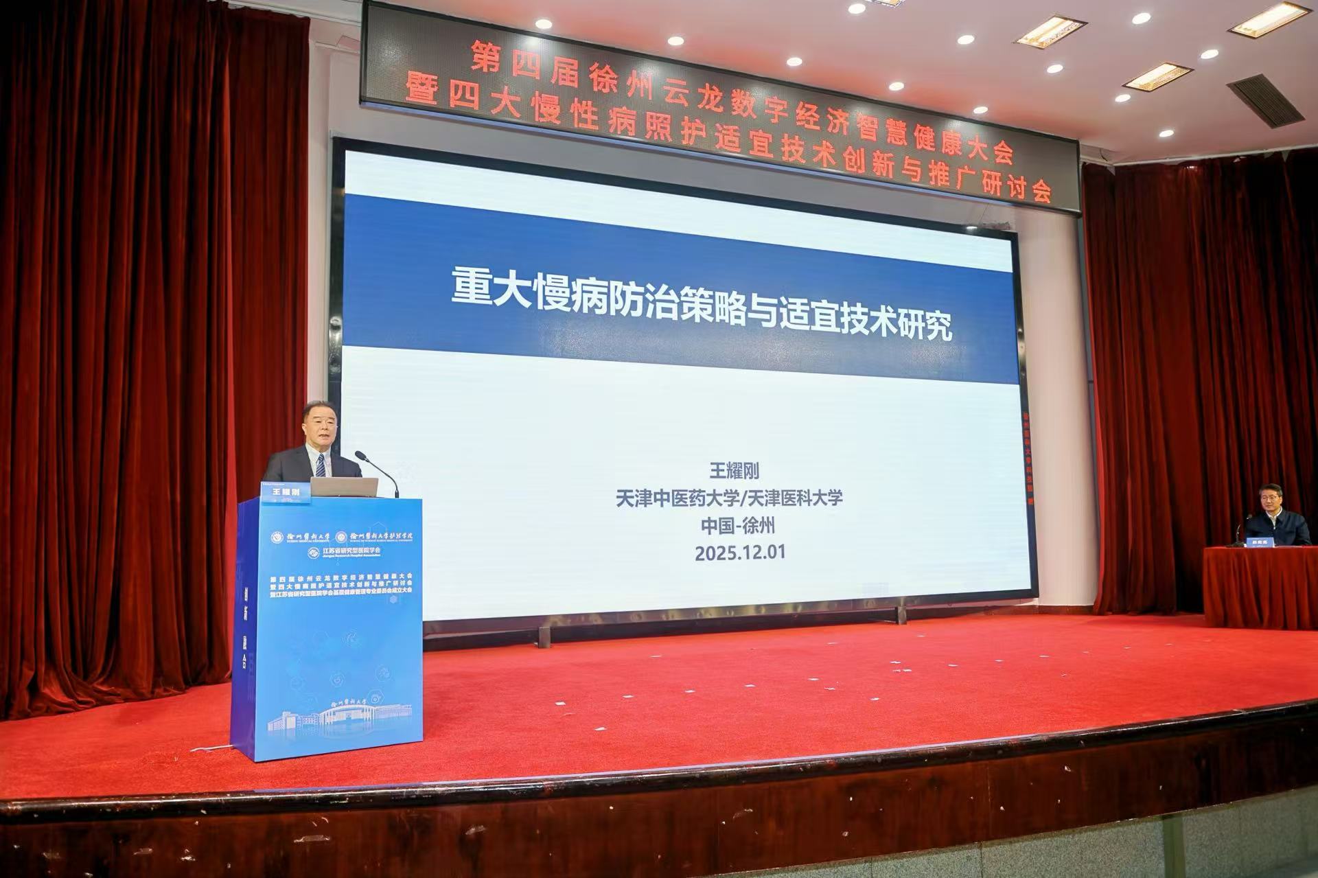 2025年12月1日,第四届徐州云龙数字经济智慧健康大会暨四大慢病照护适宜技术创新与推广研讨会在徐州医科大学主校区学术报告厅隆重开幕。本次研讨会由国家科技创新2030“四大慢病”重大专项课题组、中共云龙区委、云龙区人民政府、江苏省研究型医院学会、徐州医科大学联合主办,徐州医科大学护理学院、徐州医科大学资产经营公司共同承办,江苏德康智慧健康研究院有限公司、嘉茂宏(北京)医学科技发展有限公司共同协办,旨在积极响应“健康中国”战略部署,推动慢性病照护适宜技术的创新融合与普及应用,深化数字技术在健康管理领域的实践与合作。研讨会设置“主题报告”和“四大慢病适宜技术案例交流”环节,吸引了来自全国各地的近200名专家学者、行业代表齐聚徐州,共商慢病防控与智慧照护发展新路径。