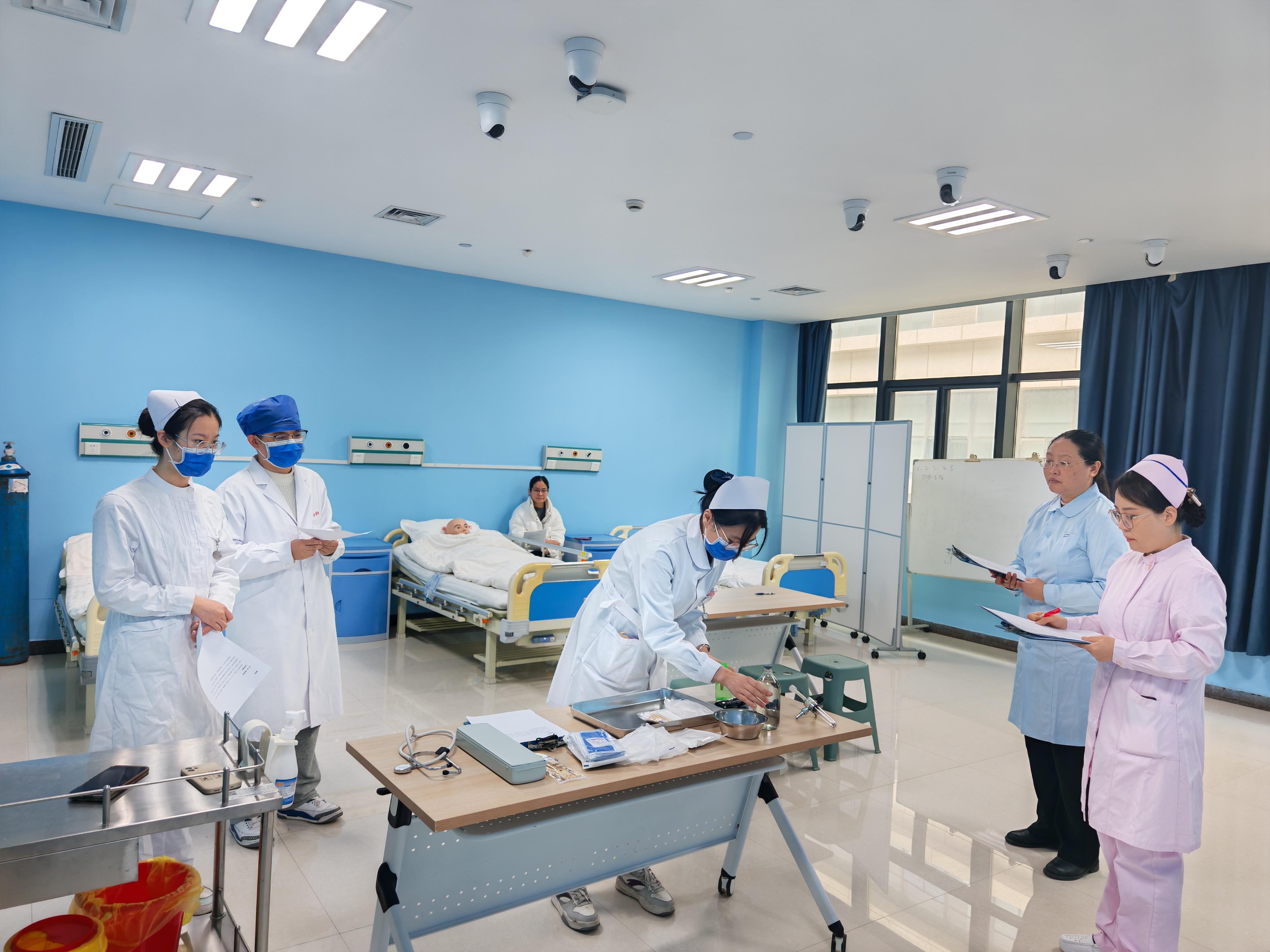 为确保考核的专业性与公正性,本次考核组建了由学院骨干教师与临床资深教师共同构成的考评小组。考前,考评团队深入研讨临床典型案例、反复打磨考核方案,严格统一评分标准,为考核的高质量推进筑牢基础。考核创新性以真实临床案例为核心载体,引入标准化病人(SP)模拟复杂诊疗场景,通过高度仿真的病情演绎与即时互动反馈,还原临床工作的真实情境;同时采用多站式考核与团队协作任务相结合的形式,考生以小组为单位分工协作,共同完成综合病例的评估、处置与护理全流程。