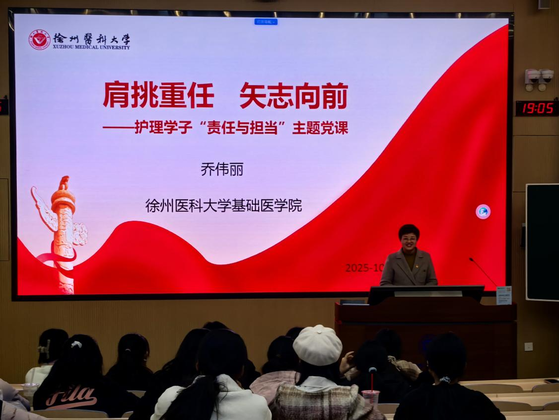 10月29日,乔伟丽老师以“肩挑重担,矢志前行”为中心,紧扣责任与担当,结合护理专业特色,讲述了不同时期护理工作者的使命责任,引导学生思考如何以党员标准要求自己,练就过硬护理本领,在患者需要时勇挑重担,用实际行动诠释护理人的担当。