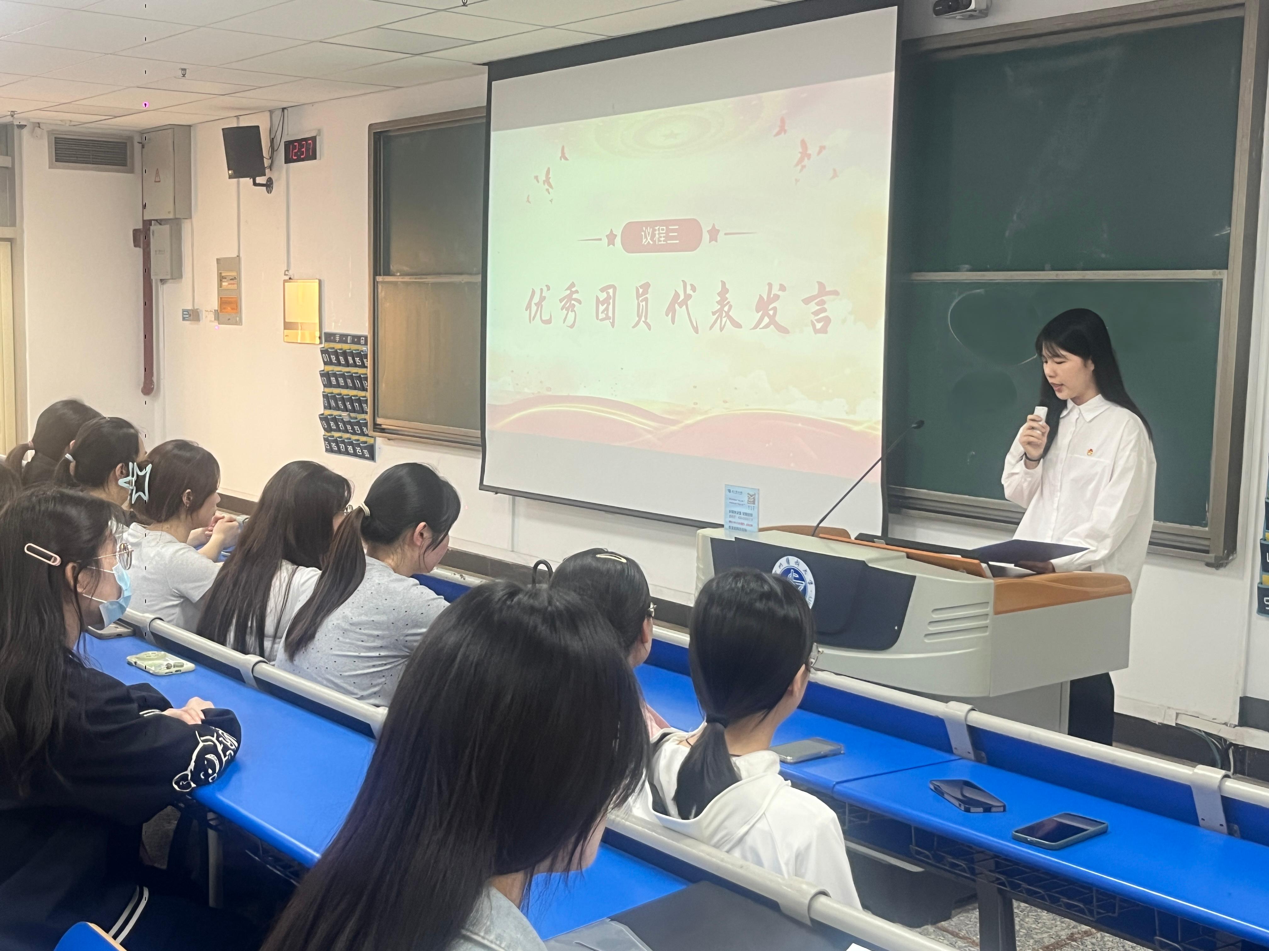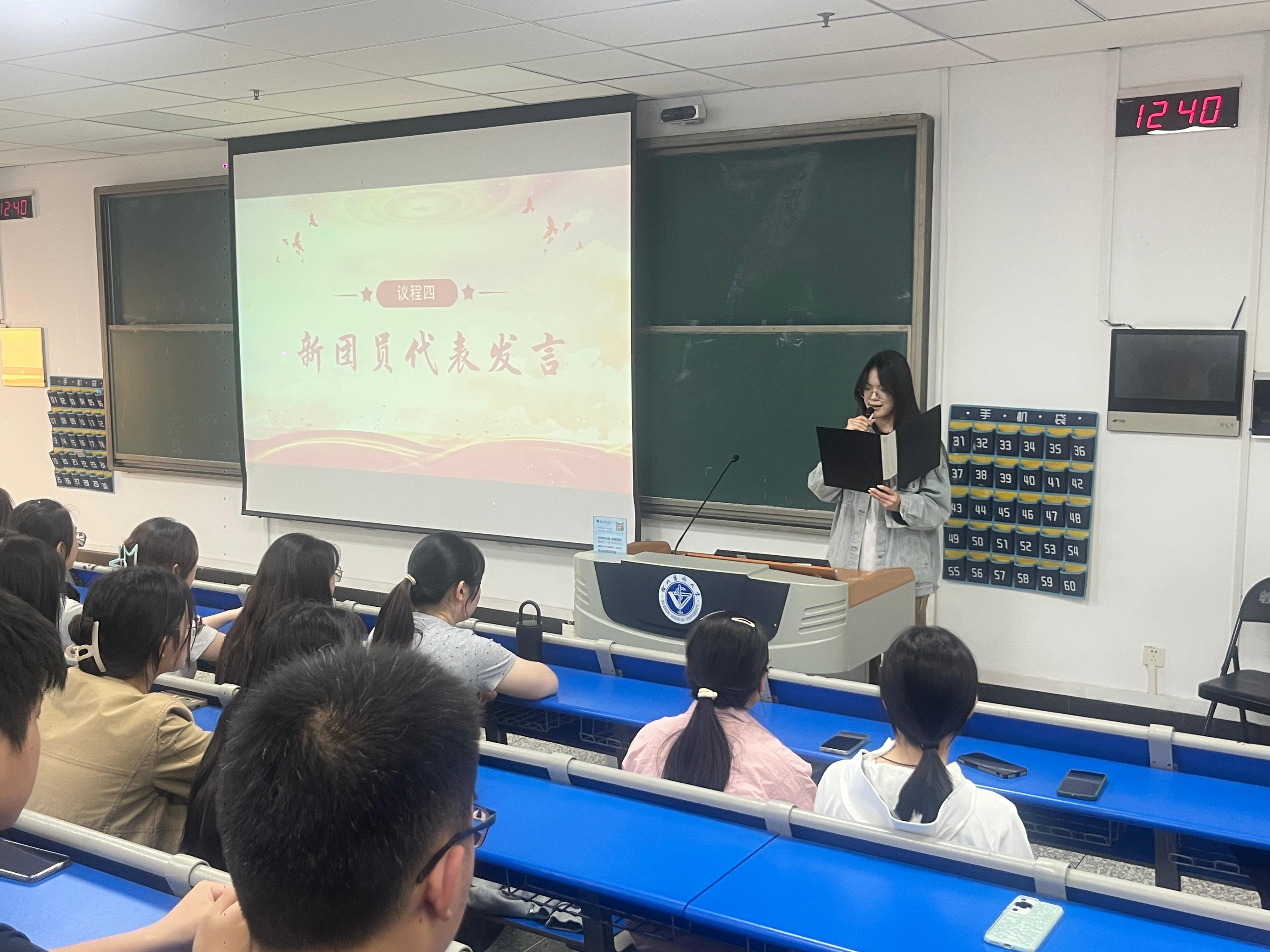 优秀团员代表高钰茜结合自身成长经历发言,号召全体新团员发挥模范作用,不断提升自我,努力成为“有理想、敢担当、能吃苦、肯奋斗”的新时代青年。