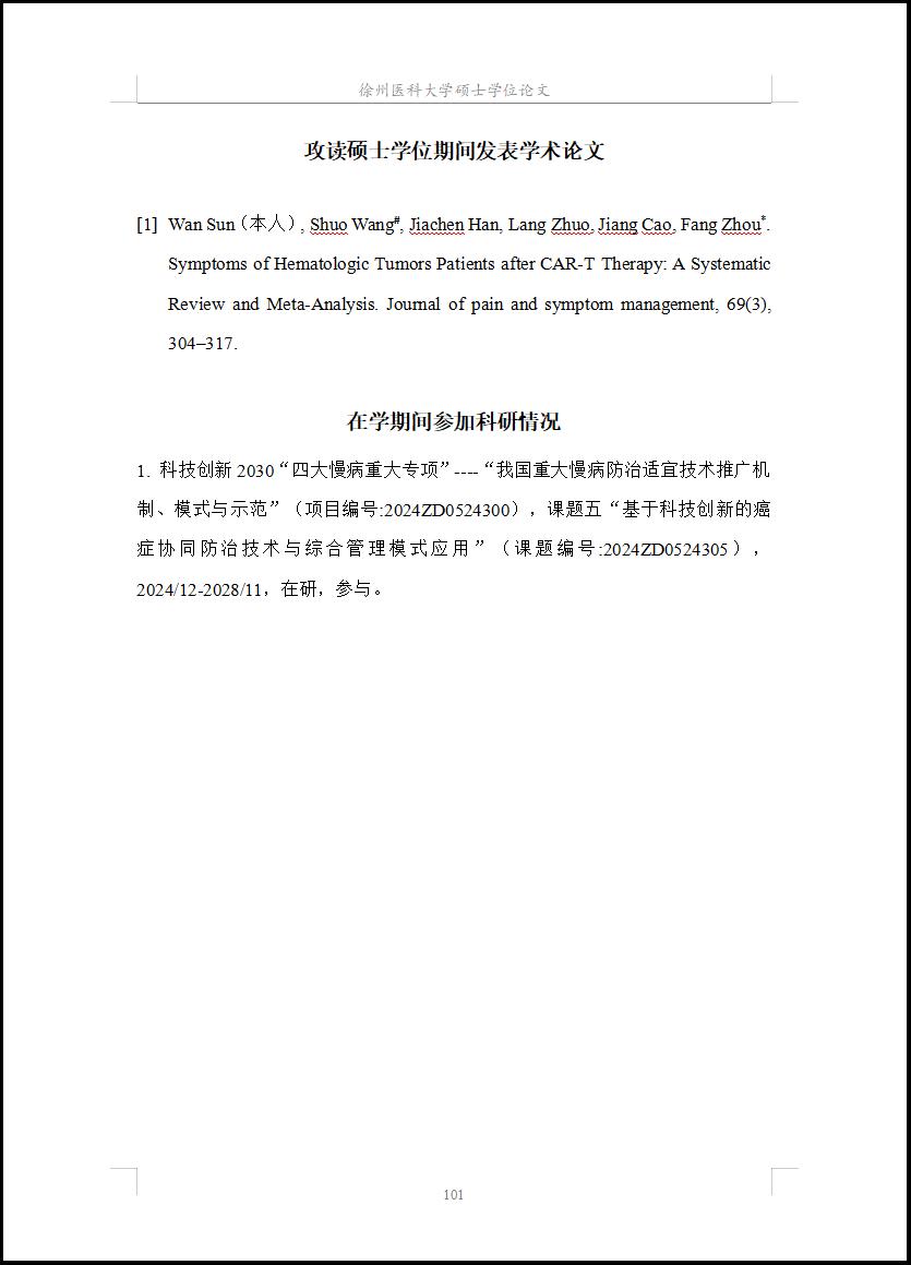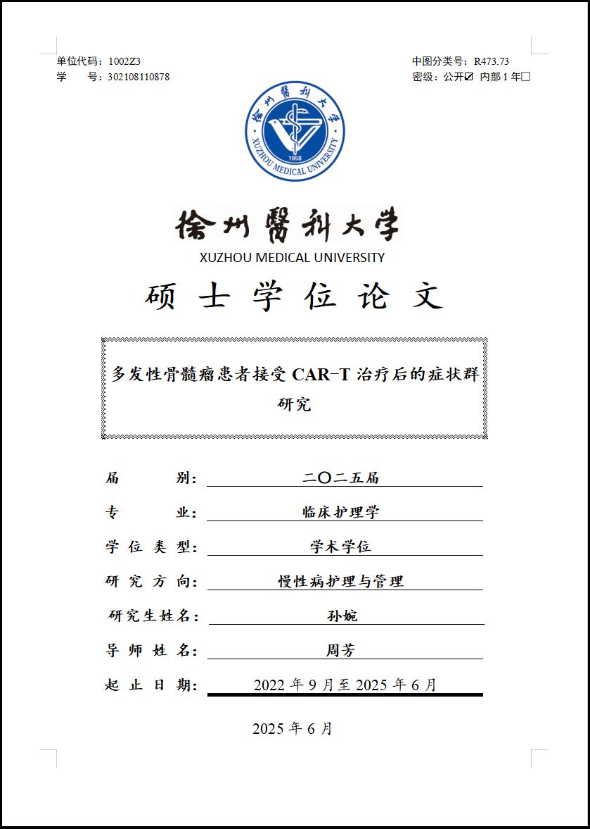 3.孙婉(硕士):多发性骨髓瘤患者接受CAR-T治疗后的症状群研究