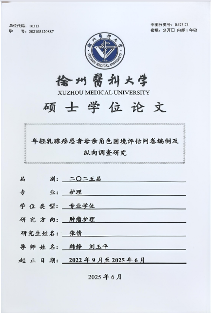 2.张倩(硕士):年轻乳腺癌患者母亲角色困境评估问卷编制及纵向调查研究